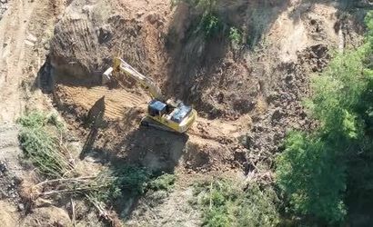 Arnavutköy Bolluca Mavi Göl’de dolgu çalışmaları su seviyesini düşürdü