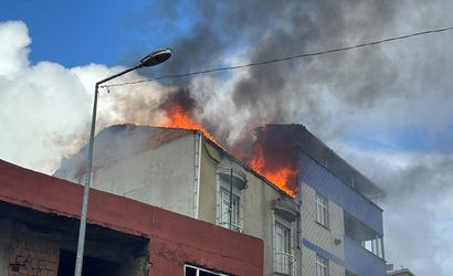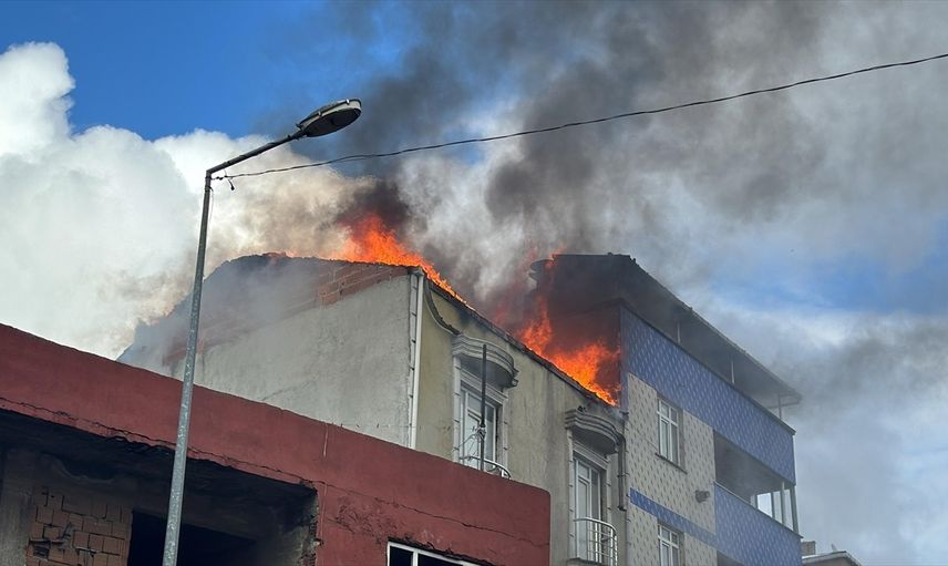 Arnavutköy'de 3 katlı binanın çatısında çıkan yangın söndürüldü.