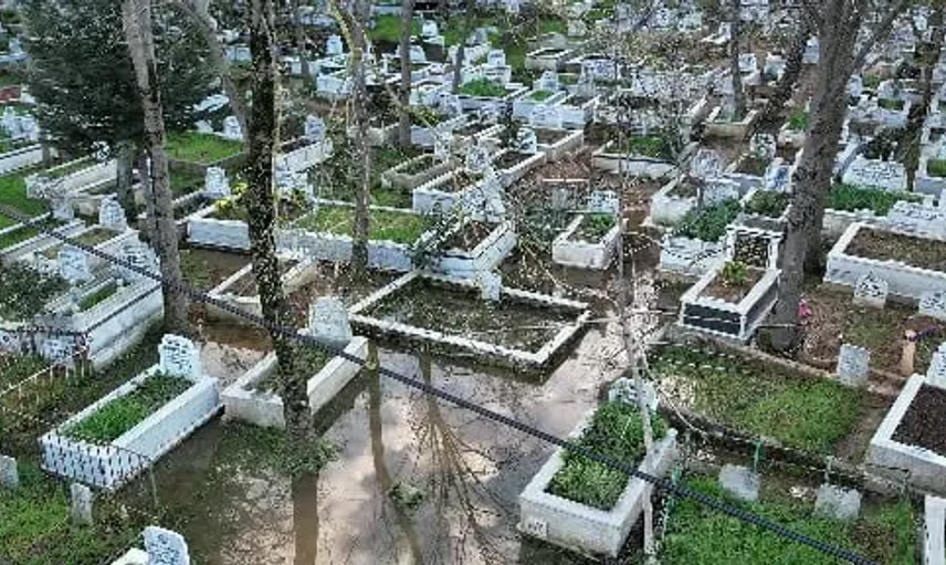 Edinilen bilgilere göre, Boğazköy Mahallesi'ndeki mezarlık alanda yağış sonrası yoğun su birikintileri oluştu. Dron görüntülerinde mezarların etrafının suyla kaplandığı, yolların çamur haline geldiği ve ziyaretçilerin mezarlığa ulaşmakta güçlük çektiği görüldü.