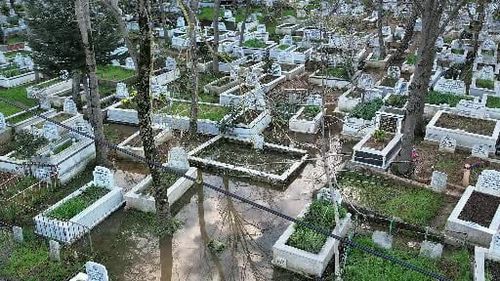 Arnavutköy'de Boğazköy Mezarlığı yağış sonrası su altında kaldı