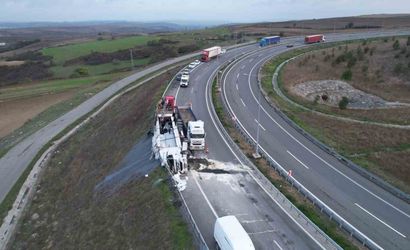 Tırda plastik ham maddesi olduğu öğrenildi; kazayla birlikte tonlarca madde otoyola döküldü. Kaza nedeniyle otoyolun tek şeridi trafiğe kapandı ve tırı yoldan kaldırma çalışmaları devam ediyor.