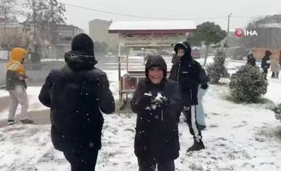 Arnavutköy'de kar yağışı etkili oldu, karın tadını çocuklar çıkarttı