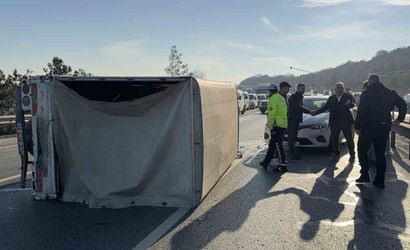 Arnavutköy'de zincirleme trafik kazasında kamyonet yan yattı, sürücü vatandaşlar tarafından kurtarıldı