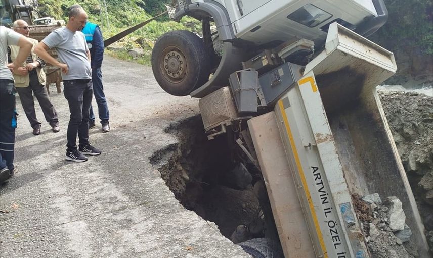 Artvin'in Arhavi ilçesinde etkili sağanak sonrası meydana gelen heyelanlar nedeniyle kapanan tarihi Çifte Köprüler ve Mençuna Şelalesi yolunda, İl Özel İdaresi ekiplerinin yürüttüğü onarım çalışmaları sırasında yolda çökme yaşandı. Çökme sonucu, İl Özel İdaresi'ne ait bir kamyon oluşan çukura düştü.