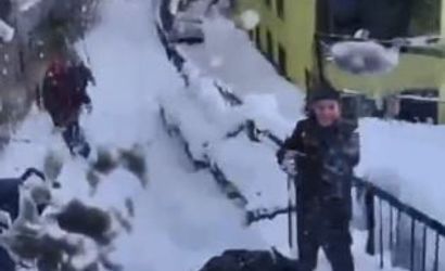 Yoğun kar sonrası belediye çalışması ile çocuk oyunları arasında sıcak karşılaşma