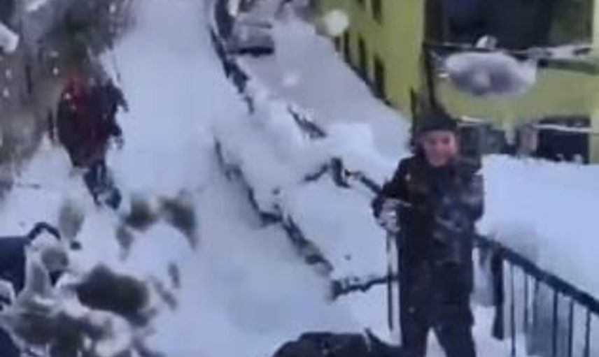 Artvin'de çocukların kartopu savunması: Yol açan iş makinesine karşı neşeli tepki