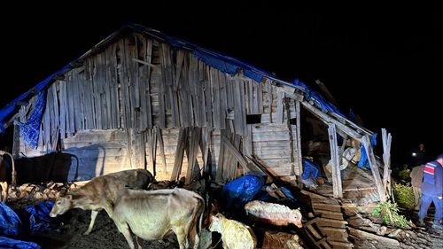 Artvin'in Borçka ilçesinde çöken ahırdan 33 büyükbaş hayvan, AFAD ve jandarma ekipleri tarafından kurtarıldı.