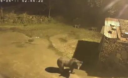 Arhavi ilçesine bağlı Dik Yamaç köyü Akıncılar mevkiinde, Yılmaz Kuru'ya ait evin güvenlik kamerasına yansıyan görüntülerde bir ayının köy içinde yiyecek arayıp etrafta dolaştığı, ardından bölgeden uzaklaştığı görüldü. Görüntülerde ayının peşine takılan iki tilki de dikkat çekti.