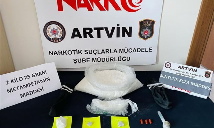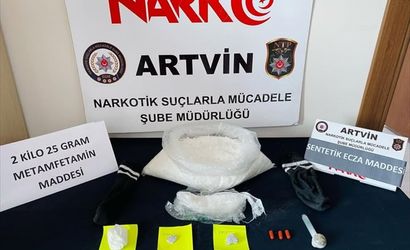 Artvin'de, 2 kilo 25 gram sentetik uyuşturucu, 3 uyuşturucu hap ve uyuşturucu kullanma aparatı ele geçirilen operasyonda gözaltına alınan 4 şüpheli tutuklandı.