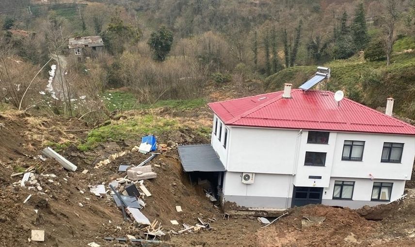 Artvin'in Hopa ilçesinde, Orta Hopa Mahallesi'nde meydana gelen heyelandan etkilenen iki katlı bir ev, yaklaşık 50 metre sürüklendi.