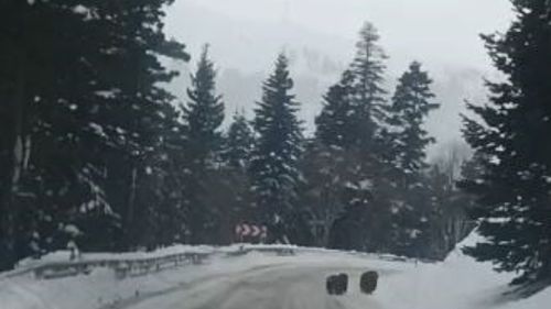 Artvin'in Şavşat Sahara bölgesinde, kış uykusuna yatmayan 4 boz ayının karayolunda görüntülendiği anlar cep telefonu kamerasıyla kaydedildi.