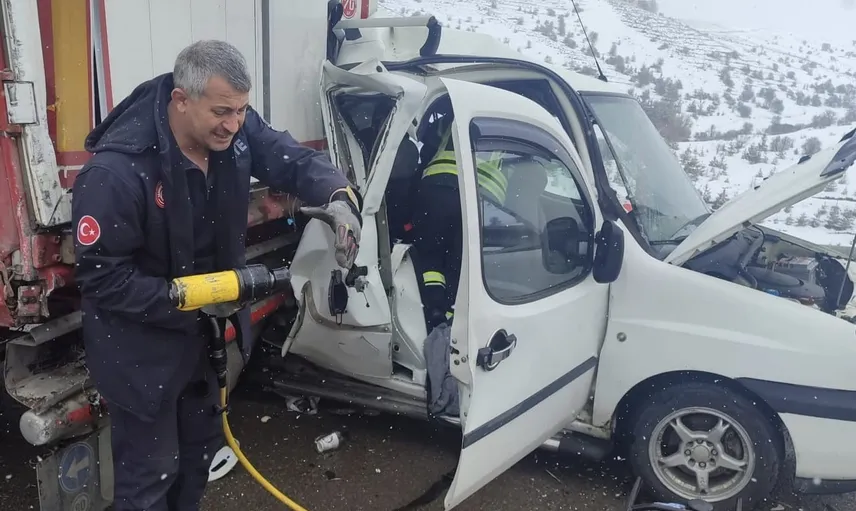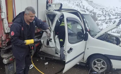 Erzurum’un Aşkale ilçesi Tepebaşı mevkiinde, Tercan-Aşkale istikametinde seyir halinde olan hafif ticari araç, önünde ilerleyen tıra arkadan çarptı. Çarpmanın etkisiyle araç savrularak tırın altına girerken, tırın aracı bir süre sürüklediği bildirildi. Kazanın şiddeti sonucu aracın arka kısmında ciddi hasar oluştu.