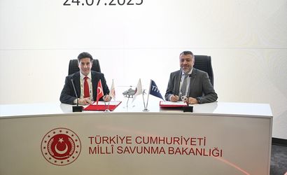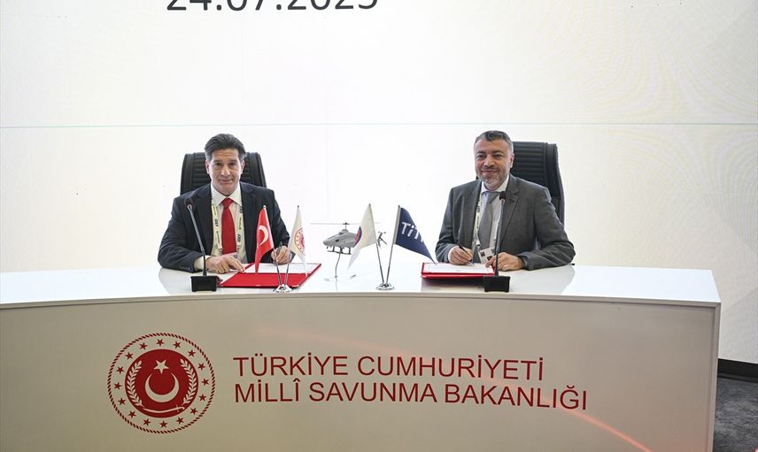 Anadolu Ajansının (AA) 'Global İletişim Ortağı' olduğu IDEF 2025, Milli Savunma Bakanlığı ev sahipliğinde, Cumhurbaşkanlığı Savunma Sanayii Başkanlığı destekleriyle, Türk Silahlı Kuvvetlerini Güçlendirme Vakfı yönetim ve sorumluluğunda ve KFA Fuarcılık AŞ organizatörlüğünde İstanbul Fuar Merkezi'nde (İFM) gerçekleştiriliyor. Helikopterleri insansızlaştıracak işbirliğinin imzaları IDEF 2025'te atıldı. Askeri Fabrikalar Genel Müdürü İmdat Ersoy (solda) ve Titra Teknoloji Genel Müdürü Ekrem Ünlü (sağda) imzaları attı.