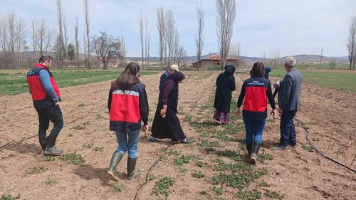 Kütahya İl ve Aslanapa İlçe Tarım Müdürlükleri, Yalnızsaray Köyü'nde üreticilere İyi Tarım Uygulamaları eğitimi verip yüzde 75 hibe destekli ahududu parsellerini yerinde kontrol etti.