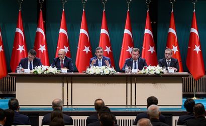 Cumhurbaşkanı Yardımcısı Cevdet Yılmaz, Cumhurbaşkanlığı Külliyesi'nde, Resmi Gazete'de yayımlanarak yürürlüğü giren 2026-2028 dönemini içeren Orta Vadeli Program'ı (OVP) açıkladı.
