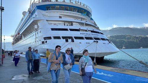 Rusya'nın Soçi'den kalkan 'Astoria Grande' kruvaziyeri, 947 yolcu ve 429 mürettebatla Amasra Limanı'na demirleyerek bölge turizmine katkı sağladı.