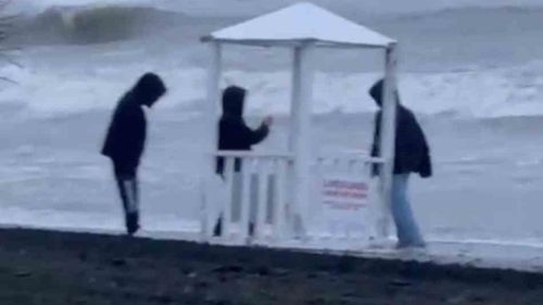 Atakum'da sahilde cankurtaran kulübesini denize atmaya çalışan 3 çocuk polis tarafından engellendi
