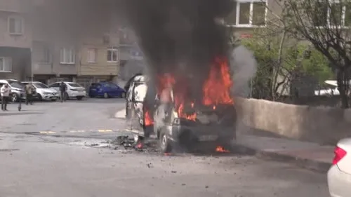 Ataşehir'de park halindeki minibüs yangında kullanılamaz hale geldi
