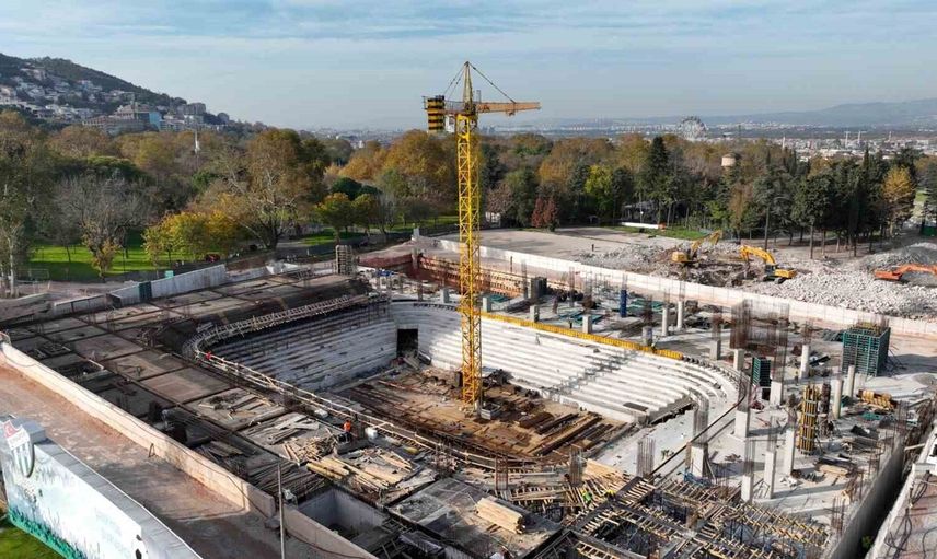 BURSA BÜYÜKŞEHİR BELEDİYESİ TARAFINDAN TEKRAR AYAĞA KALDIRILACAK OLAN KENTİN SİMGE YAPILARINDAN ATATÜRK SPOR SALONU’NDA İNŞAAT TÜM HIZIYLA DEVAM EDİYOR.