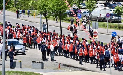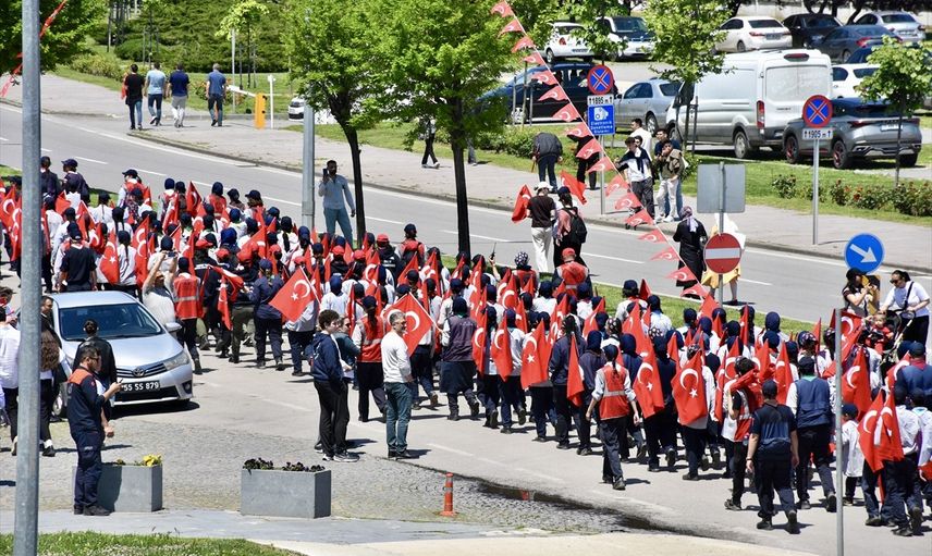 Türkiye Cumhuriyeti'nin kurucusu Büyük Önder Gazi Mustafa Kemal Atatürk'ün 19 Mayıs 1919'da Kurtuluş Mücadelesini başlatmak üzere Samsun'a ilk adımı attığı yer olan Tütün İskelesi'nde karaya çıkarılan Atatürk'ü temsil eden Türk bayrağı, protokol üyeleri ve vatandaşların katıldığı kortej yürüyüşüyle izciler tarafından Atletizm Pisti'ne götürüldü. Yürüyüşe askeri araçların yanı sıra polis ve itfaiye araçları da eşlik etti.