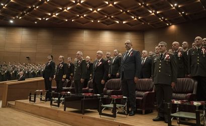 "En büyük Harbiyeli" olarak nitelendirilen Cumhuriyetin Kurucusu Büyük Önder Gazi Mustafa Kemal Atatürk'ün Kara Harp Okulu'na (KHO) öğrenci olarak girişinin 126'ncı yıl dönümü, Milli Savunma Bakanı Yaşar Güler (sağ 4) ile Türk Silahlı Kuvvetleri (TSK) komuta kademesinin katıldığı törenle kutlandı. Törene, Milli Savunma Bakanı Güler'in yanı sıra, Genelkurmay Başkanı Orgeneral Metin Gürak (sağ 5), Kara Kuvvetleri Komutanı Orgeneral Selçuk Bayraktaroğlu (sağ 2), Deniz Kuvvetleri Komutanı Oramiral Ercüment Tatlıoğlu (sağ 6), Bakan Yardımcısı Musa Heybet (sağ 7), Milli Savunma Üniversitesi Rektörü Prof. Dr. Erhan Afyoncu (sağ 3) ve Kara Kuvvetleri Eğitim ve Doktrin Komutanı Korgeneral Zorlu Topaloğlu (sağda) da katıldı.