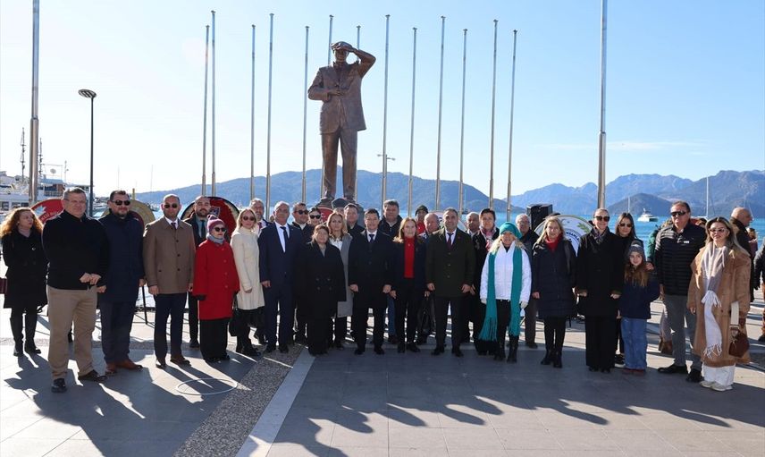 Etkinlikte, öncelikle saygı duruşunda bulunuldu ve ardından İstiklal Marşı okundu. Törene, Marmaris Kaymakamı Nurullah Kaya, Aksaz Deniz Üs Komutanı Tuğamiral Neslim Eski ve Belediye Başkanı Acar Ünlü katılarak, Atatürk anıtına çelenk sundular.