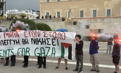 Atina'da düzenlenen genel grev kapsamında bir araya gelen Students for Gaza üyeleri, parlamento binası önünde Küresel Sumud Filosu'na destek pankartı açtı ve Gazze'ye yönelik ablukayı kırma girişimine dayanışma mesajı verdi.