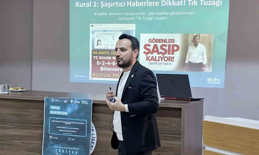 "Haber Dedektifi: İnternetteki Doğru ve Yalanı Nasıl Ayırırsın?" başlıklı sunumda Somuncu, kaynak doğrulama yöntemleri, içerik analizi ve dezenformasyondan korunma stratejilerini öğrencilere aktardı. Etkinlik, gençlerin eleştirel düşünme becerilerini ve dijital okuryazarlık düzeyini yükseltmeyi hedefliyor.