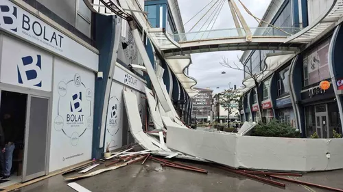 Avcılar'da fırtınada çatısından kopan parçalar çevredeki iş yerlerine zarar verdi