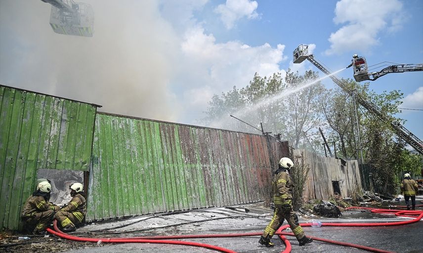 Avcılar'da hurdalık alanda çıkan yangına itfaiye ekipleri müdahale ediyor.