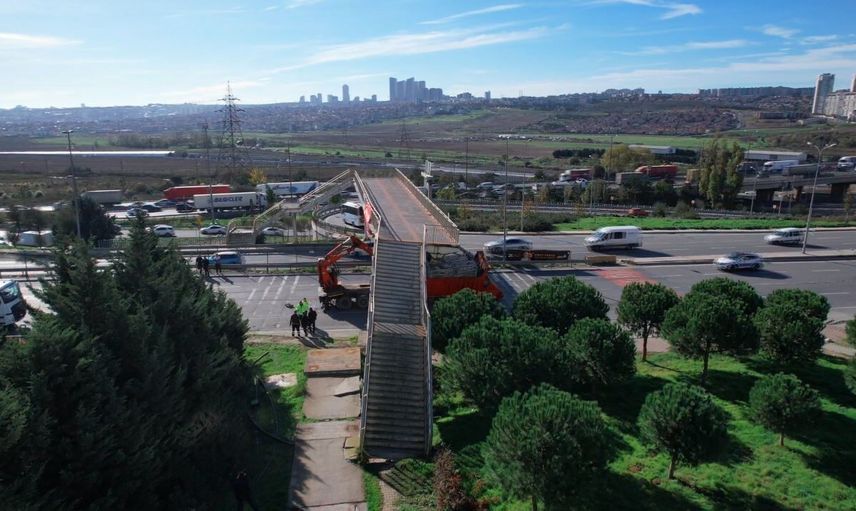 Avcılar'da iş makinesi taşıyan tır üstgeçide çarptı