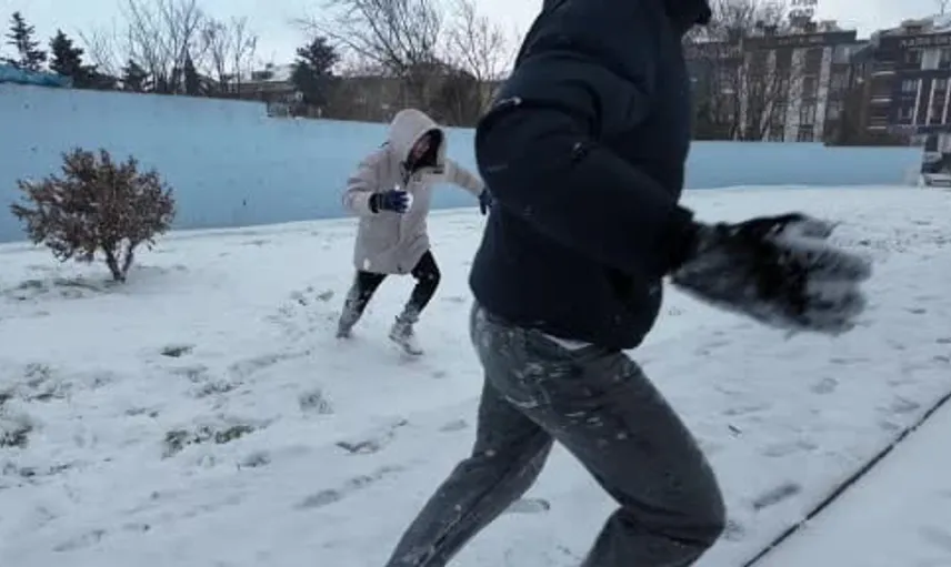 Ali Özgür ise arkadaşlarıyla uzun süredir oynadıklarını ifade ederek “Kar yağışını çok özlemişiz sonunda geldi. 3 saattir burada kendi aramızda kartopu ile oynuyoruz. Sonra kardan adam yapmayı denedik beceremedik” dedi.