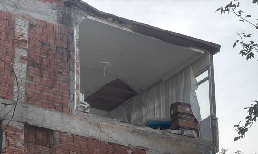 Avcılar'da kentsel dönüşüm kapsamında yıkımı yapılan binaya bitişik apartmanın en üst katındaki dairenin 2 odasının duvarı olmadığı ortaya çıktı.