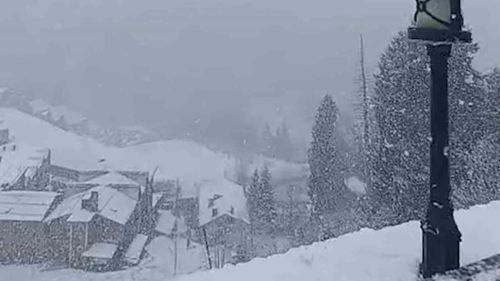 Rize'nin Çamlıhemşin ilçesindeki Ayder Yaylası, nisan ayında yağan karla beyaza büründü; ziyaretçiler manzarayı fotoğrafladı.