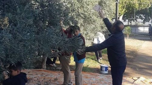 Aydın Bozdoğan'da Alamut Okulu öğrencileri, 'Zeytin Dalı Altında' Projesi kapsamında okul bahçesindeki zeytinleri toplayarak uygulamalı tarım deneyimi kazandı.