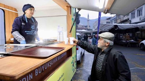 Aydın Büyükşehir Belediyesi, kışla birlikte kent genelindeki pazar alanlarında vatandaşlar ve esnafa sıcak çorba ikramına başladı.
