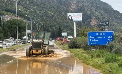 Aydın-Söke kara yolunda sel suları ulaşımı etkiledi