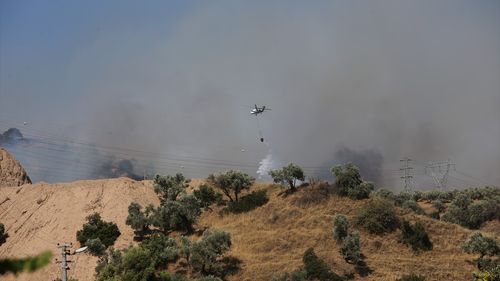 Aydın'ın Efeler ilçesinde ağaçlık alanda çıkan yangına havadan ve karadan müdahale ediliyor.