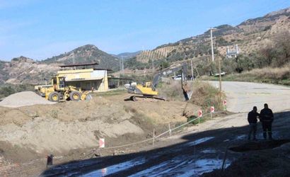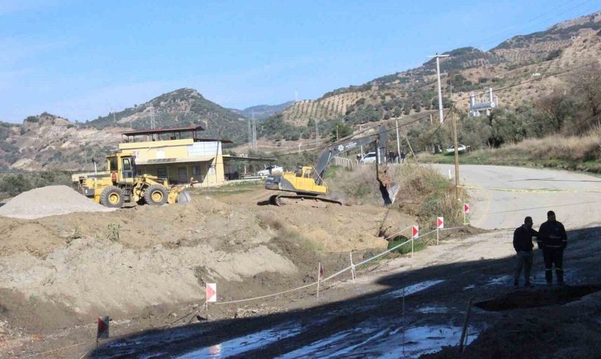 Aydın'ın Germencik ilçesi Bozköy yolu üzerinde sabaha karşı meydana gelen patlamada, iddiaya göre iletim hattından taşan yüksek sıcaklıktaki su yolda tahribata neden oldu.