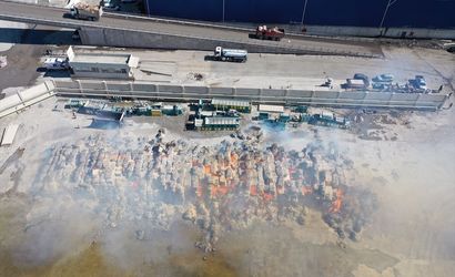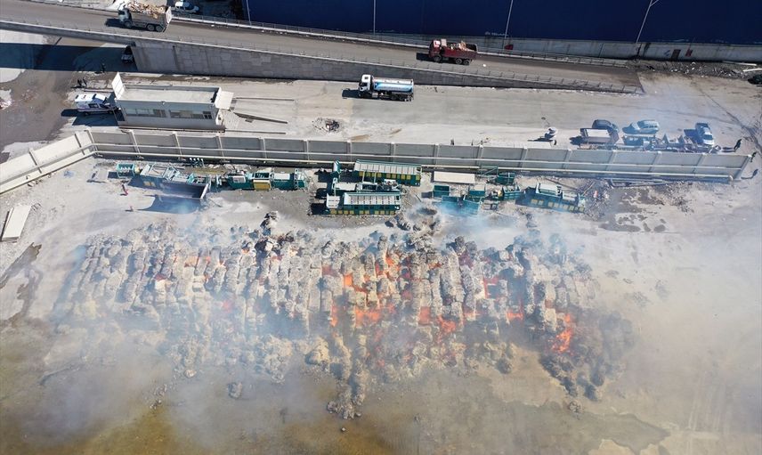 Aydın'ın Söke ilçesinde bulunan bir kağıt fabrikasının depolama alanında, sıkıştırılmış kağıtların bulunduğu açık alanda henüz keşfedilmemiş bir sebeple yangın çıktı. Çevredekilerin ihbarı üzerine itfaiye ekipleri hızla olay yerine sevk edildi.