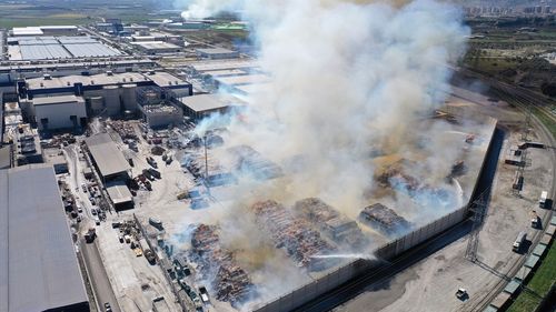 Aydın'ın Söke ilçesindeki kağıt fabrikasında çıkan yangına müdahaleler sürüyor, sağlık tedbirleri alındı.