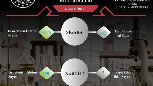 Aydın'da Kasım 2025 tütün denetimleri: 5.934 işletme denetlendi Aydın İl Sağlık Müdürlüğü ekipleri, Aydın Valiliği koordinasyonunda Kasım 2025 boyunca kent genelinde tütün mamullerinin kullanımını azaltmak ve halk sağlığını korumak amacıyla denetimler gerçekleştirdi. Yapılan toplam 5.934 denetimde 64 ihlal belirlendi. Denetimlerin…