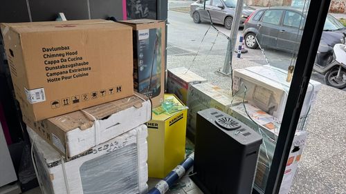 Aydın'ın Söke ilçesinde bir motosikletin çarptığı demir duba, iş yerinin camını kırarak içeri girdi. Olay anı güvenlik kamerasına yansıdı.