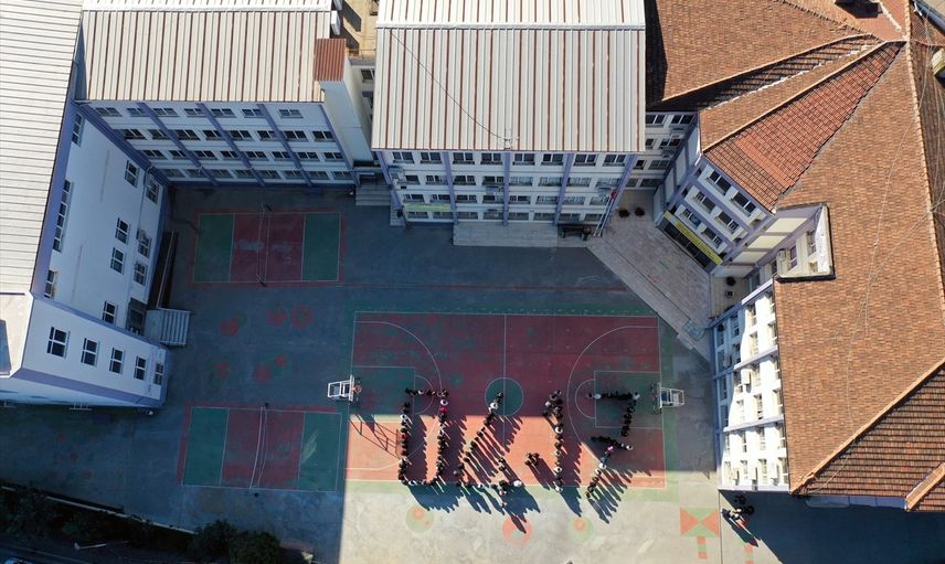 Öğrenciler, bedenleriyle depremin meydana geldiği saati sembolize eden “04.17” yazısını oluşturdu. Bu yaratıcı performans, hem acıyı paylaşmak hem de kaybedilenleri anmak adına duygusal bir mesaj taşıdı. Öğrencilerin bu anlamlı hareketi, okuldaki diğer öğrenciler ve öğretmenler tarafından büyük bir saygıyla izlendi.
