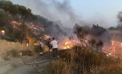 Aydın'da otoyoldaki kamyonda çıkıp ağaçlık alana sıçrayan yangın söndürüldü.