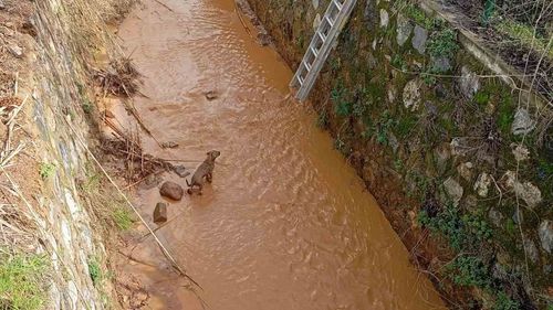 Aydın'da sulama kanalına düşen köpek itfaiye ekiplerince kurtarıldı