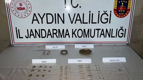 Aydın'ın Germencik ilçesinde yapılan operasyonda 66 parça tarihi eser ele geçirildi, 2 kişi gözaltına alındı.