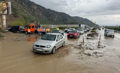 Aydın'ın Söke ilçesinde toprak kayması sonucu Aydın-Söke kara yoluna dökülen çamur trafiği aksattı.