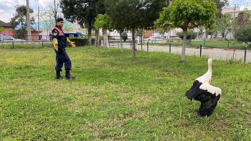 Aydın'da Yaralı Leylek Jandarma Ekipleri Tarafından Kurtarıldı