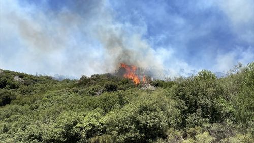 Aydın'ın Sultanhisar ilçesinde ziraat alanında çıkan yangın, ormanlık alana sıçradı. Yangını kontrol altına alma çalışmaları devam ediyor.